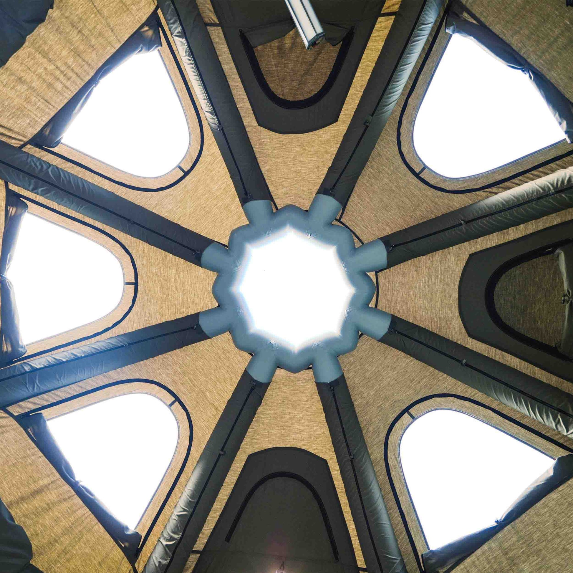 Experience the ultimate in comfort and convenience with this inflatable tent for camping—a spacious, insulated 2 to 4 person tent that sets up in just minutes. No poles required—simply unpack and inflate. This air tent features 17m² of floor space, a high ceiling for standing room, and a smart cabin-like layout. Ideal for families, it withstands all seasons, including snow and cold. A built-in stove jack lets you enjoy warmth during chilly adventures, making it a true hot tent for camping. With large transparent windows, 3 doors, and a water-resistant design, it’s perfect for glamping, car camping, or off-grid escapes. Start your trip right away—this blow up tent includes everything you need. Esta carpa inflable es fácil de instalar.