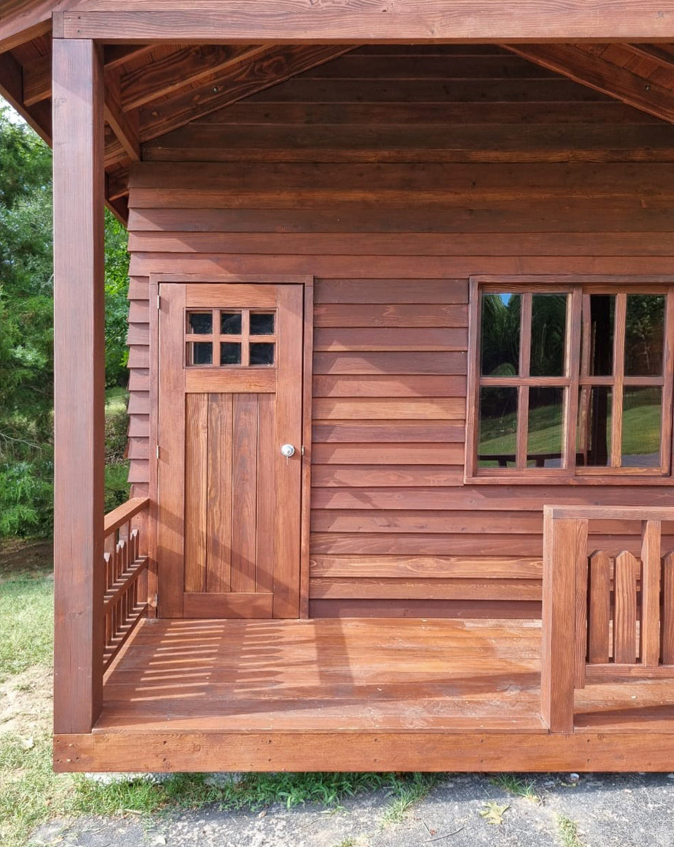 The first Backyard Cabin was designed for an 8 year old young lady that needed a place to get away from her 3 brothers. A “No boys allowed” sign soon sprung up. The Backyard Cabin is a wonderful retreat for kids of all ages. We recently had a customer order one with the comment: “it will be my stylish doghouse that my wife threatens to send me to!” Any size, any height – custom designed to fit your needs. Free US Shipping (excludes HI & AK). Our full service installation team is available in all 50 states.