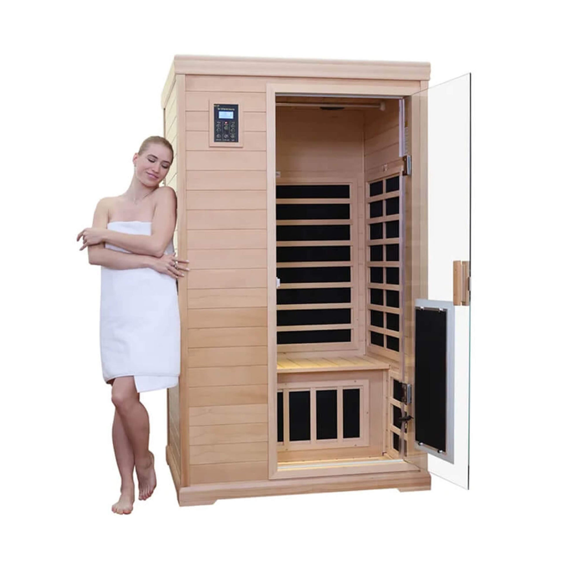 Luxury 2-Person Hemlock Wood FAR Infrared Sauna Room W/ Glass Door, 1750W (SAK81525)